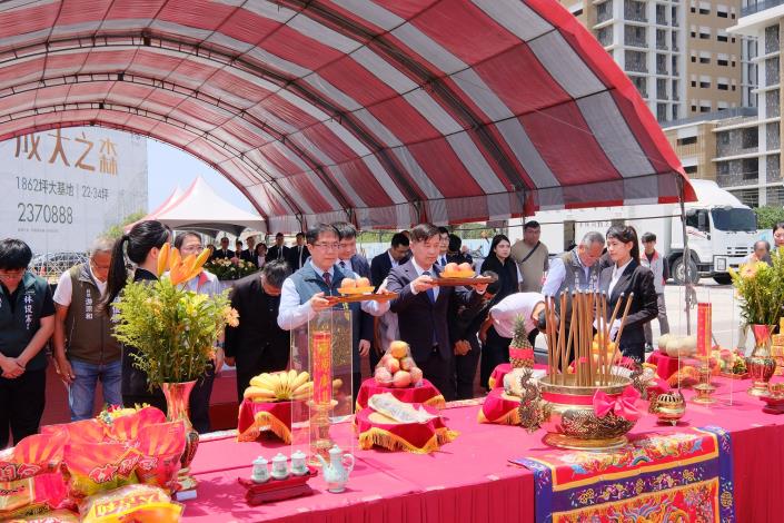 市府近年配合中央推動活化土地政策,採公私協力以都市更新方式開發公有土地,本案於111年5月由市府都發局成功徵得實施者,透過實施者申請都市更新容積獎勵,可無償取得104戶臺南社宅及完成公共設施用地開闢,為本市繼宜居成功、宜居仁愛之後,第3件(本年度第1件)動土開工的公辦都更開發案,工程團隊於今(16)日舉行動土典禮,由市長黃偉哲、中央及多位地方民代蒞臨現場,共同祈福社宅工程順利進行。