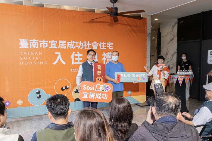 市府都發局指出, 「宜居成功」的入住典禮延續溫馨互動的主軸 ,活動現場特別安排茶飲點心及問答贈獎環節,營造熱鬧的社區氣氛。市長親自向住戶獻上祝福,並致贈實用的生活好禮「推車」作為入住賀禮,隨後更抽出多份實用禮券,讓住戶在歡樂氣氛中滿載而歸,展現市府對社宅住戶的貼心關懷。