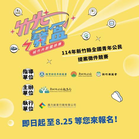 一、本縣青年具備多元視角與創新行動力,為鼓勵其積極參與公共事務,本局辦理旨揭活動,結合「青年公共參與培力」及「審議式民主實踐」雙主軸,期以行動參與、深度對話與具體提案,促使青年為在地發聲,攜手共創新竹未來。