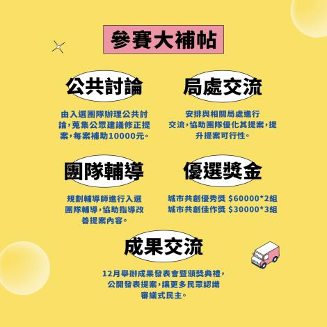 (二)城市共創佳作獎:3組,每組頒發行動獎勵金新臺幣3萬元。