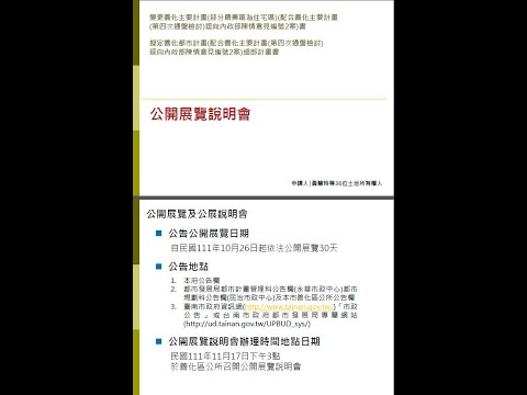 標題:「變更臺南市主要計畫(部分港埠用地及「機84」機關用地為「社福4」社福用地)(配合內政部社會住宅興辦計畫)案」暨「變更臺南市南區細部計畫(土地使用分區管制要點)(配合內政部社會住宅興辦計畫)案」公開展覽說明會【簡報】